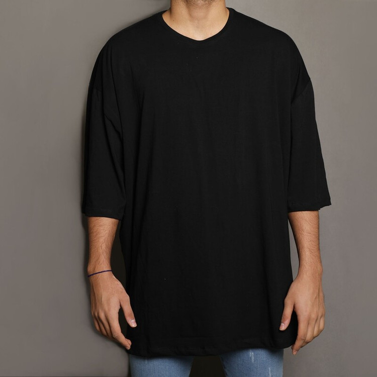 تیشرت لش آستین کوتاه مردانه رنگ مشکی ، سیاه نخ پنبه